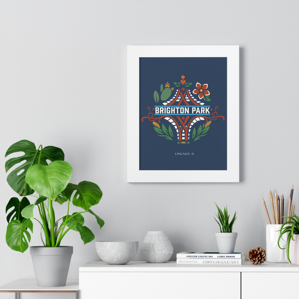 Este emblema de Brighton Park fue diseñado para reflejar la rica historia y las raíces culturales del barrio. En su centro, el cruce ferroviario representa las líneas de tren que antaño transportaban mercancías por la zona, conectando Brighton Park con la red industrial de Chicago y forjando su identidad como centro neurálgico de actividad.
